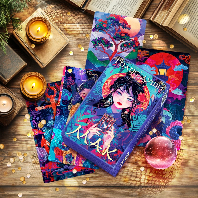 «Славянская душа» — это именно та колода, с которой легко найти контакт, глубоко прочувствовать послания и получить понятные ответы. Она соединяет в себе точность классического Таро и живую силу духовного наследия славян. Структура колоды построена на древнем образе Древа Мироздания, соединяющего три уровня бытия: Навь, Явь и Правь. В колоде 78 карт: Вышние (старшие арканы в классическом Таро) и пять элементов — Воздух, Огонь, Вода, Земля и Камень (младшие арканы). Подробное руководство, сценарии гадания и схемы чтения карт внутри коробки.